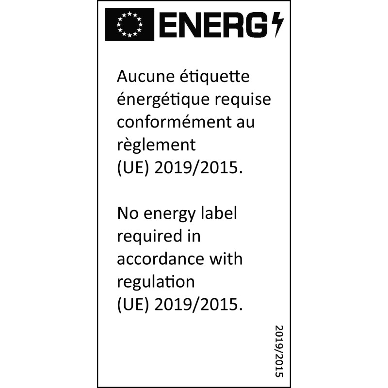 - Classe énergétique: Aucune étiquette énergétique requise conformément au règlement (UE) 2019/2015