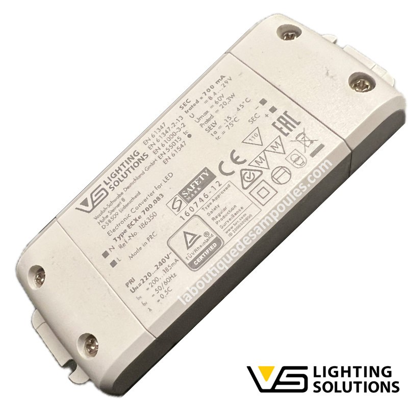 Convertisseur 700mA pour une puissance LED comprise entre 5,88W et 20,3W. VOSSLOH 186350 Type ECXe 700.083