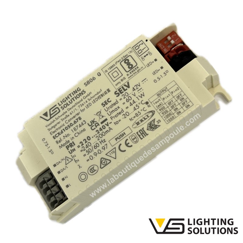 Convertisseur LED multi-courant constant 900mA 950mA 1000mA 1050mA pour une puissance allant jusqu'à 44W. Voir dans la description toutes les plages de puissances par rapport au courant. VOSSLOH 187443