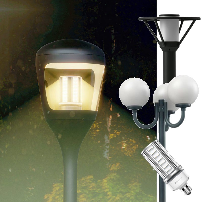 Ampoule tubulaire LED pour les lampadaires extérieurs. Chaque LED de cette ampoules est recouverte d'un petit réflecteur qui dirige la lumière vers le bas. Faisceau de lumière vers le sol sous un angle de 170°. Cette lampe peut être installée dans des luminaires fermés.