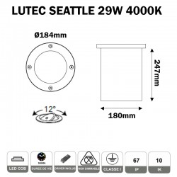 Spot encastré de sol LUTEC SEATTLE 29W 230V, 3000K (blanc chaud) ou 4000K (lumière blanche, faisceau étroit 15° ...